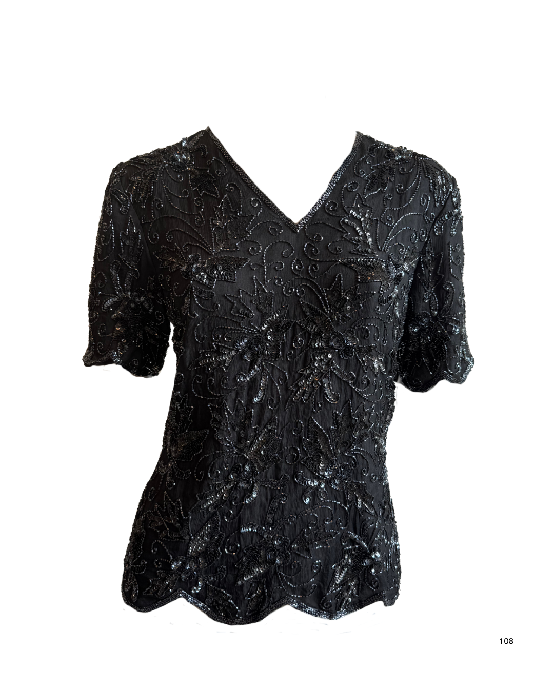 Descrição: Blusa preta com miçangas aplicadas