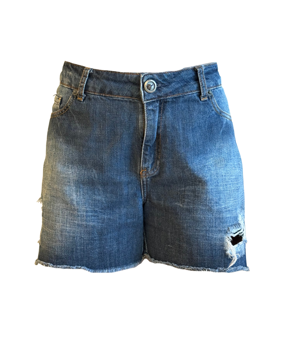 Descrição: short jeans curto, com rasgos